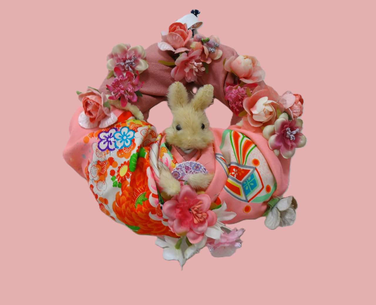 注意事項:ラグラスという植物を用いてうさぎを作製しています。お取り扱いは優しいご対応をお願いします。戸外は不向きですので、室内飾りでお願い致します。