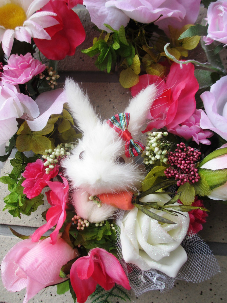No2 ピンクリース 白ウサギ立ち耳ペア 9000円